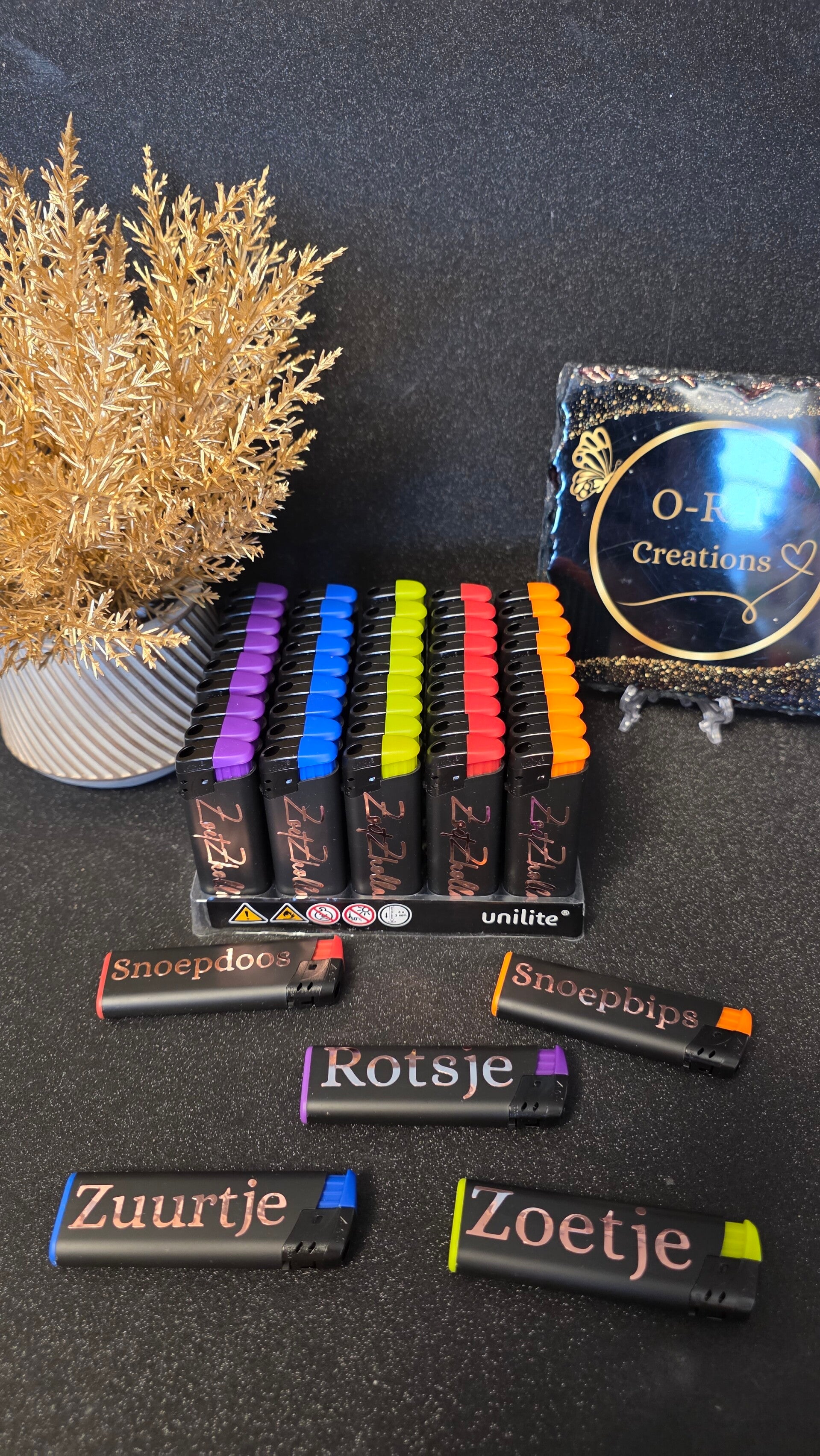 Aanstekers 50st met stickers van eigen logo of gewenste tekst.